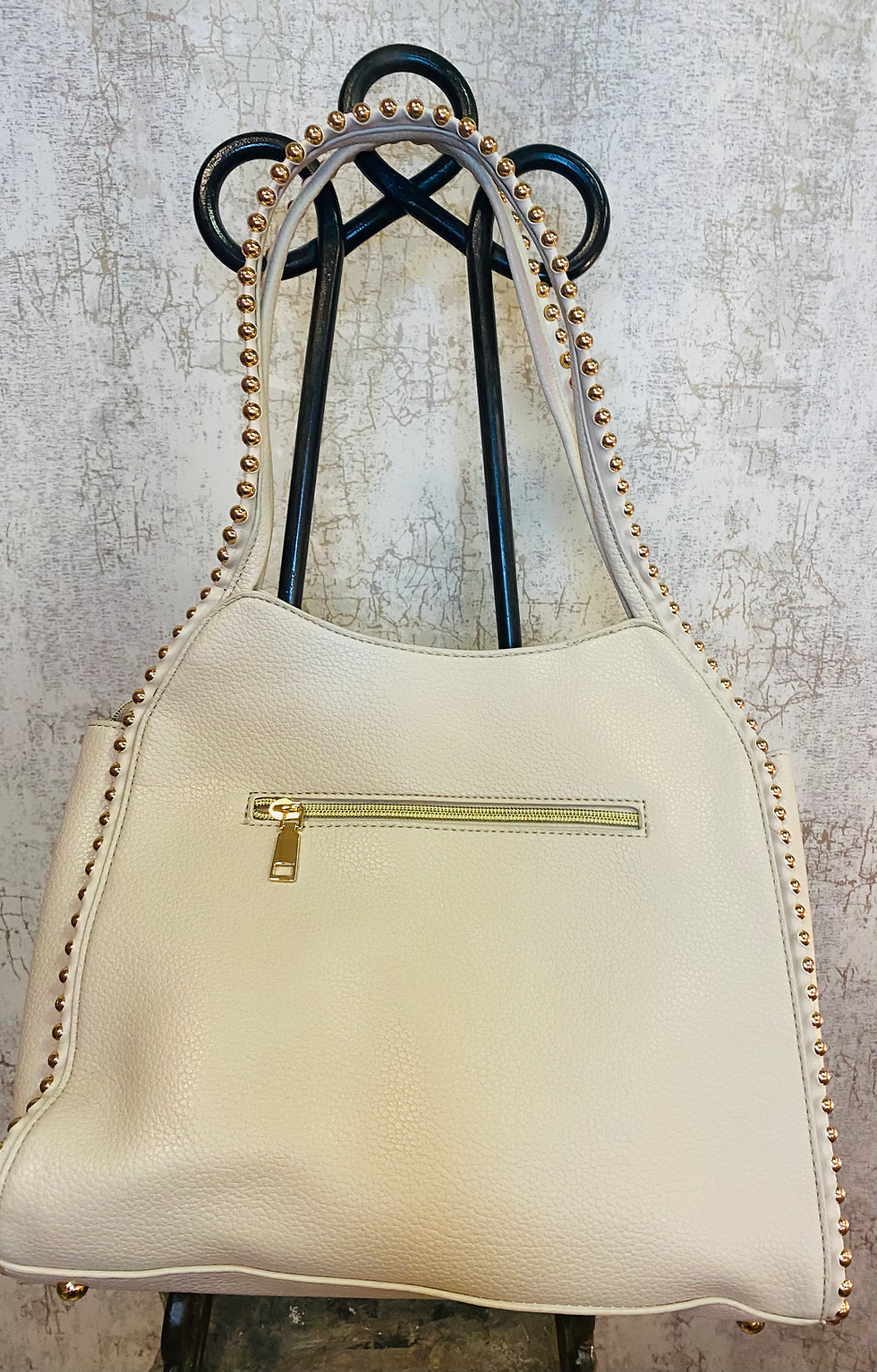 Sophia MC Handbag Shopper With Chain Ball Trim-Ivory