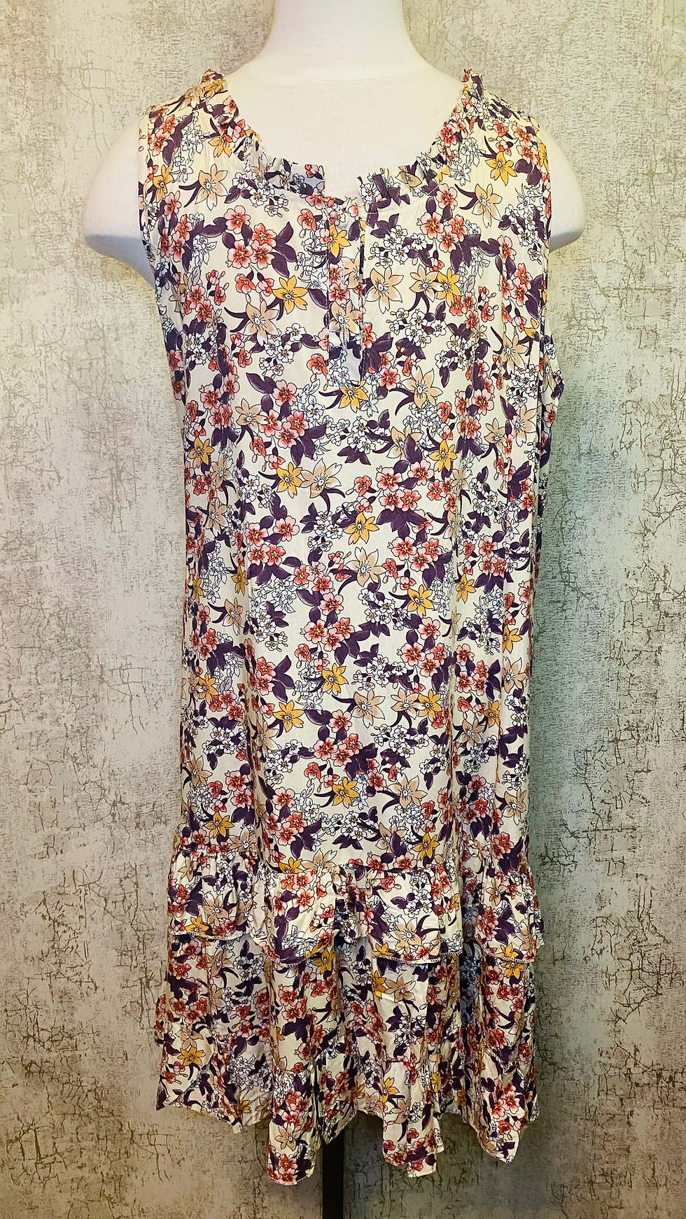 Apparel Love Ruffle Bottom Sun Dress-Sand/Plum/Coral Floral