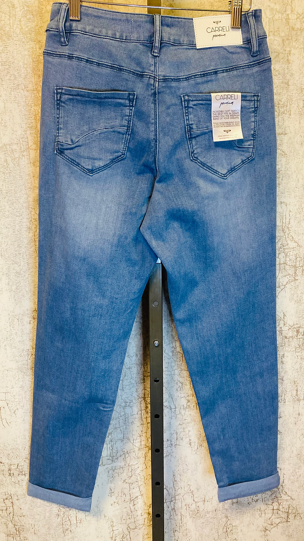 Lola Ankle Length Bell Jeans-Distressed Blue