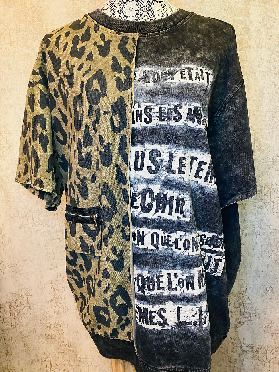 Flooo Oversized Tee-Washed Black/Leopard